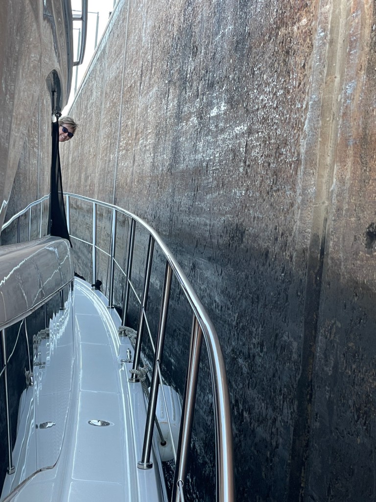 Wind gusts to 35 mph made our five locks a test for the captains. A highlight was a tow captain actually invited us to pass his 8 barges so we could beat him to the lock…and he actually powered down the tow so we could make the pass.