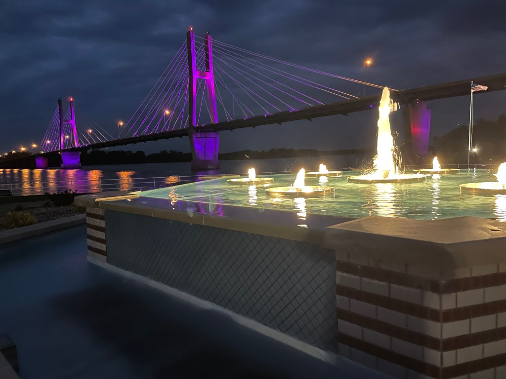 An experienced captain for hire was bringing a beautiful (really shiny) 52 SeaRay down to Grafton where some new looper friends of ours would then take over. It just so happened his destination for the day was Keokuk. Captains Matt and Jon were first class, they love boating, and were full of tips and recommendations on both boat handling and where to stay. They also needed diesel, so the local friendly diesel truck driver came down, backed into the dock area, and refueled both our boats with a few hundred gallons priced below pump price.