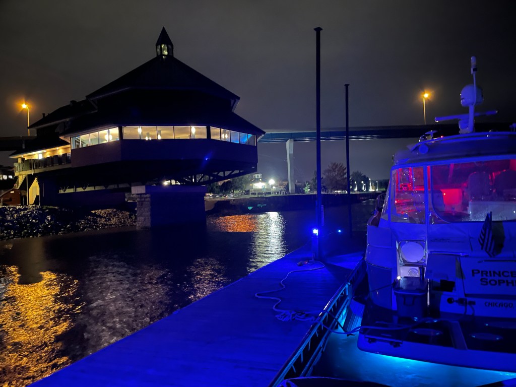 We had dinner and a martini at “Chicks” restaurant by the water which was recommended by Matt the boat captain. It was great. Then the Quincy Boat Clubhouse was open, so we joined the locals for a night cap and met more looper wanna-bees. The setting along the riverfront was another beautiful one, I took a few pictures so you can see for yourself.