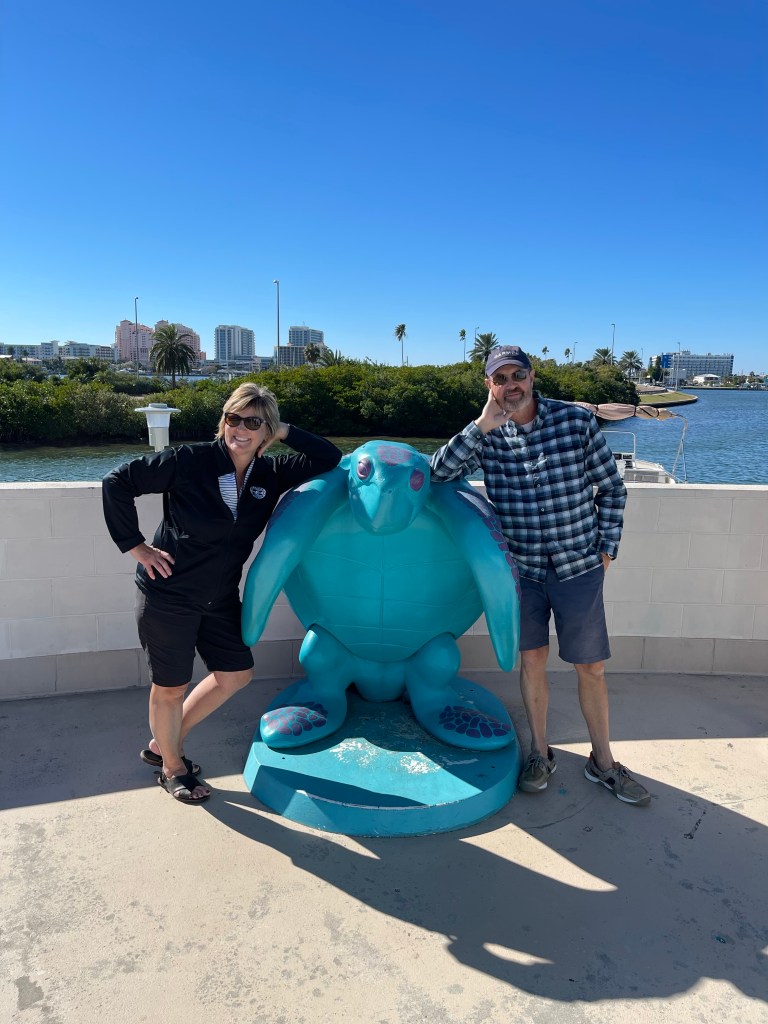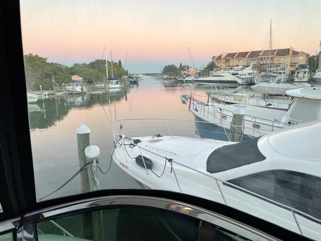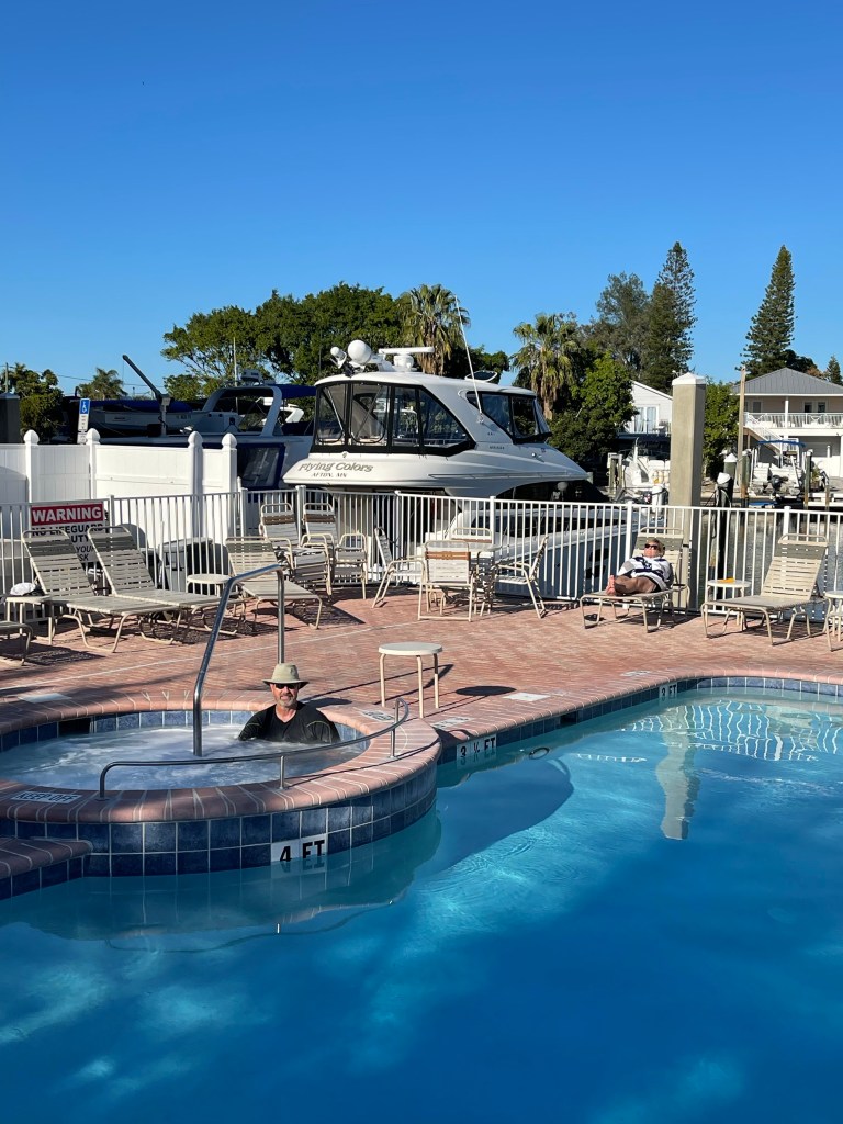 Enjoyed a fabulous Thanksgiving buffet at the Clearwater Yacht Club. Reciprocity has its benefits!Brad in his happy place on Clearwater Beach.Enjoyed a half day fishing excursion, red tide has impacted fishing here., but I can’t blame that for our small catch. Made more memories than fish for dinner!Cool vibe at Marina Cantina gourmet Mexican restaurant right in Clearwater Beach MarinaClearwater Aquarium, rescue and rehab center for dolphins, sea turtles, Otters, pelicans, also the set for the movie Dolphin Tales and Dolphin Tales II. Sadly the star of those Movies Winter the Dolphin just passed away.Amazing sea creatures at the Clearwater Aquarium. Travel Day to Madeira Bay Marina, 26 miles, a narrow fairway but well worth it . . .A welcomed surprise in Marina, a pool and hot tub just steps from the boat.Christmas decorations Mad Beach, somehow it’s just not beginning to look a lot like Christmas here, something is missing! Never tire of the beautiful FL sunsets, this one on Mad BeachSaying Good Bye to Brad in Mad Beach. So great to have him join us for this leg of our journey and for Thanksgiving and Ron’s Birthday.Last night in Mad Beach, we enjoy finding the nearest restaurant to our marina and dining there. Mad Beach Fish House was just steps away. and served up fresh fish and veggies just the way we like them. Always fun to try them local faire.Left Madeira for St Pete Beach. We found this Marina on Dockwa for only $70 a night. If ever there was a day I thought we might be needing Boat US this would have been the day. You can see the shallow spots clearly on this map. Actually we did call Boat US for advice on getting into this dock and they gave us great direction and you can see how we entered the bayou by hugging the right side. If I said it once I’ve said it before “the Loop is not for the faint-hearted”. This took a lot of guts for the Captain to even consider this port, we’ll keep you posted if it was worth it it not.