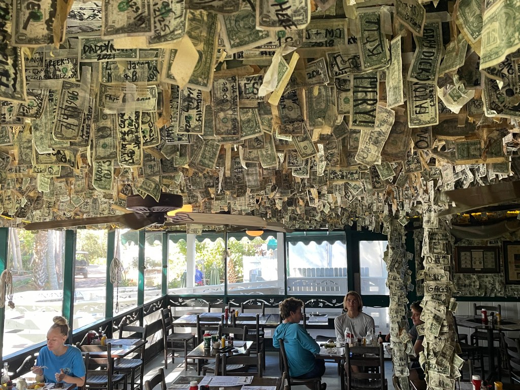 It was a little tricky coming in off the channel to South Seas from the Intercoastal, the intercoastal is not marked as clearly as the rivers with the reds and the greens, we found one dog-leg turn in particular to be surprisingly narrow but doable. When we pulled into the marina we were surprised to find Afton Marina neighbors, the boats “Cynthia” and “Wine Seller” were both docked on the same dock as us! These weren’t their MN boats but their FL versions with the same name.