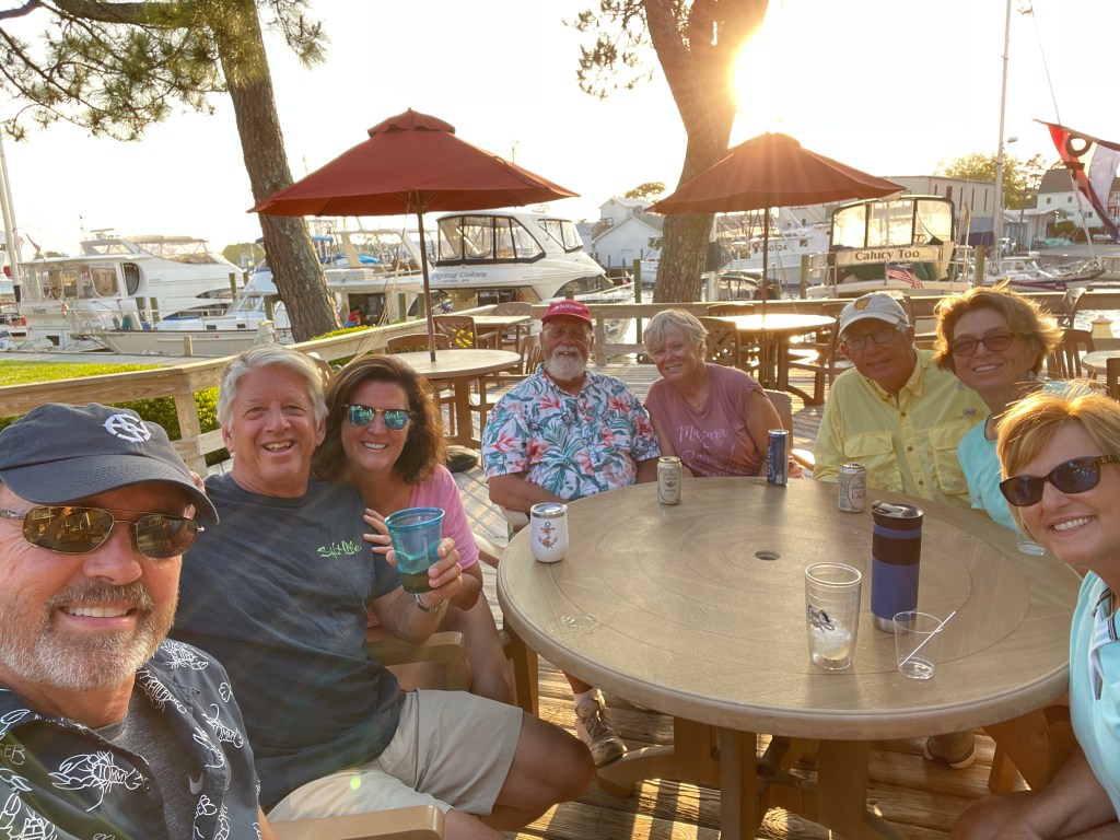 The Coinjock Restaurant is known for prime rib, and boaters had to make advanced reservations if they wanted beef. We enjoyed a great dinner, Nancy had a filet and I had the smaller prime rib special and both were great. Also redneck egg rolls, (North Carolina BBQ), and a piece of lemon chestnut pie.