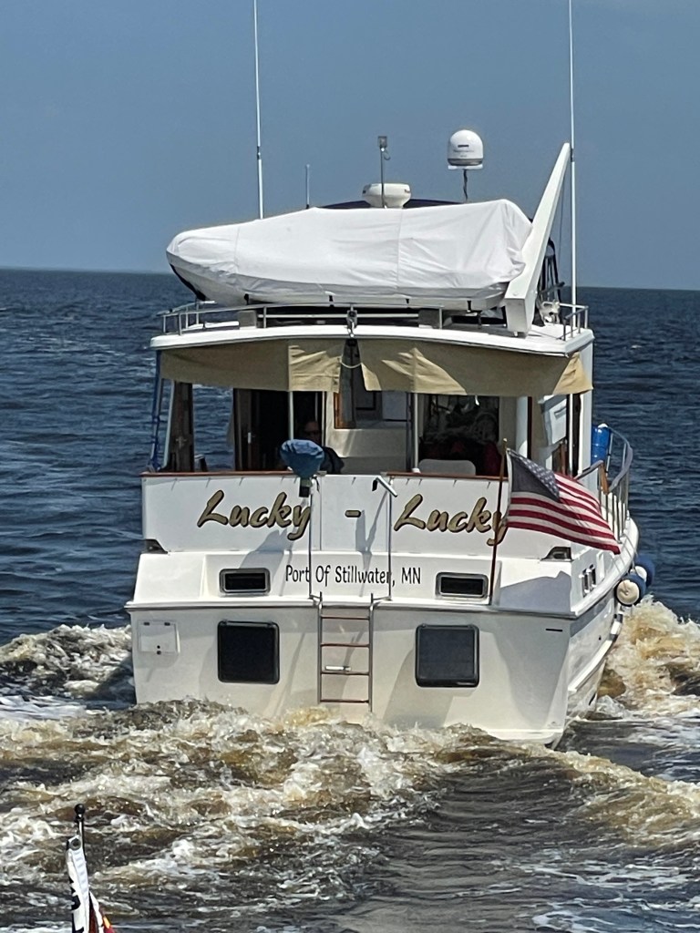 We crossed paths with Rick and Carol Peterson, friends of ours from the St. Croix Yacht Club. They left last fall, and this is the first day that we traveled the same area together. They are on the Lucky – Lucky.