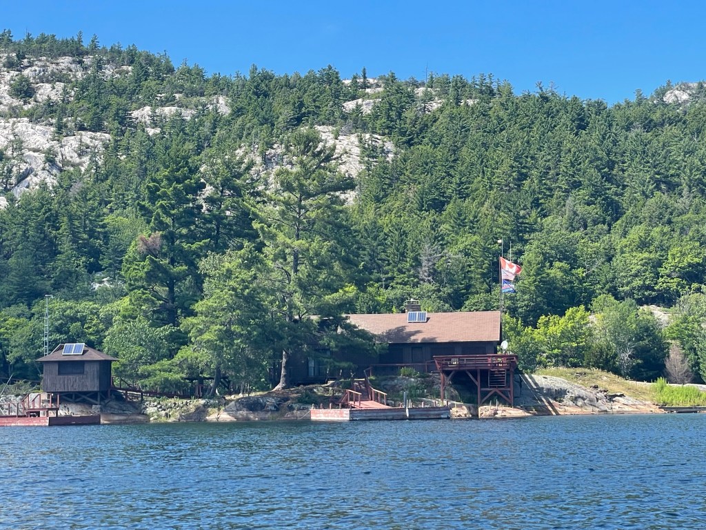 We took a long dinghy ride to get to the end of the bay to “The Pool”, which is a very weedy, protected harbor known for its remote location and beauty. Ole Evinrude, pioneer of the outboard motor company, built his cottage on an island there which was only accessible by his yacht and hooking up his boat to the house to provide electricity.
