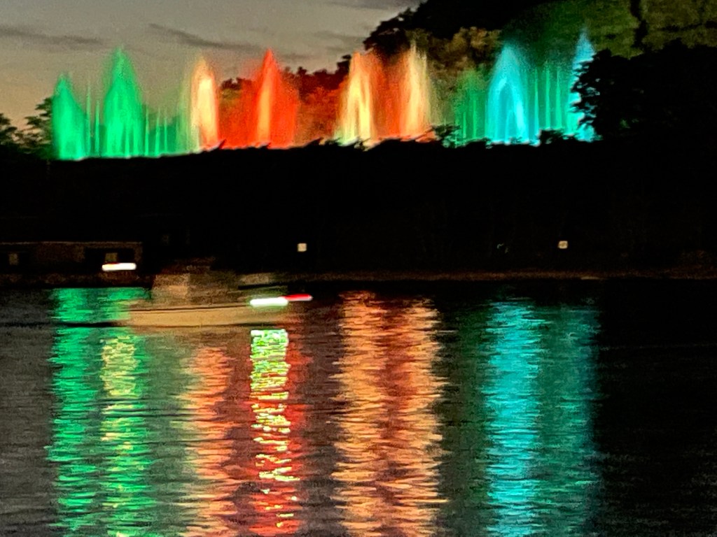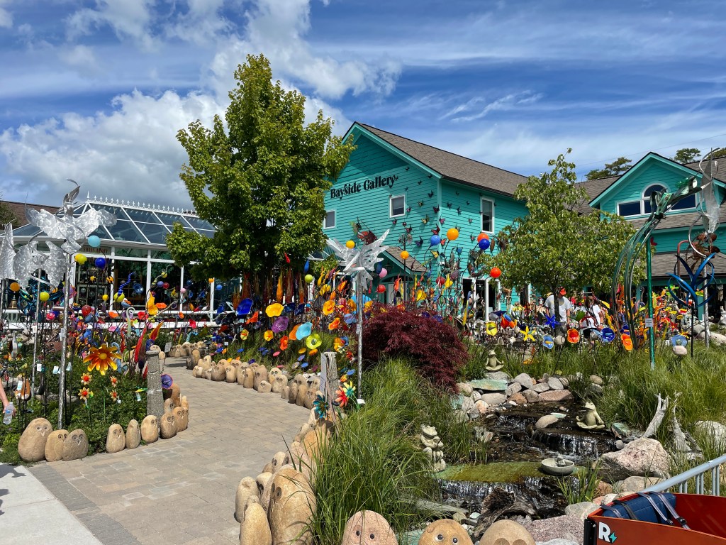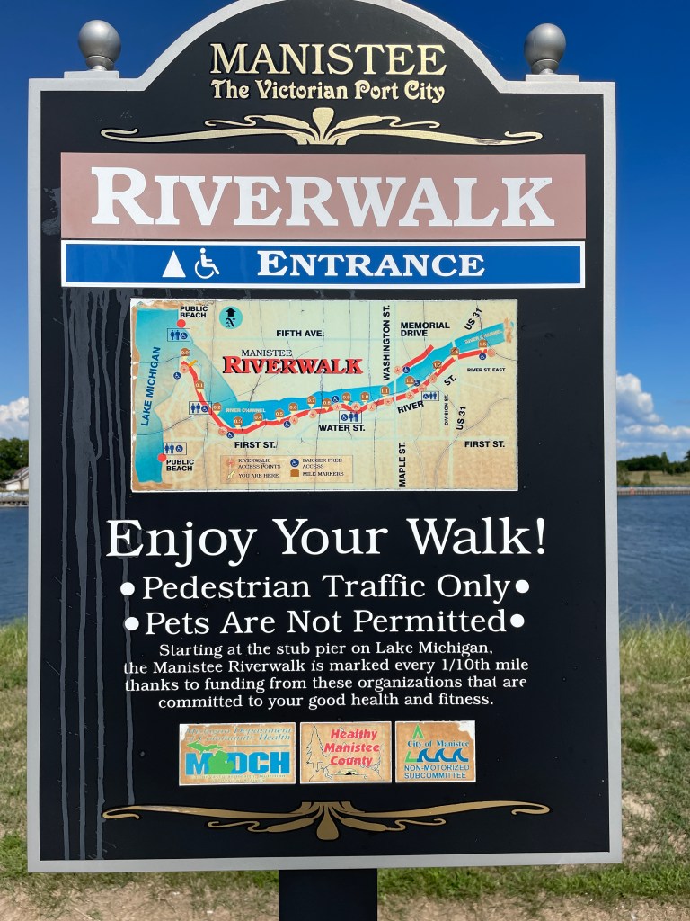 Beautiful water of Lake Michigan, No Salt, No Sharks!Flying Colors passing Sleeping Bear Dunes National Lakeshore, located on the NW Coast of the Lower Peninsula of Michigan.Our friend and Harbor Host, GailUnusual and Fun Art Gallery in Suttons Bay5 weeks of mail and monthly deliveries after CanadaGail made a home-cooked meal for us, delicious butcher-cut steaks and sides. She also drove to Costco for us twice and got Nancy to a hair salon for a color and trim.Petoskey clock tower and lighthousePetoskey Municipal MarinaSpectacular Petoskey SunsetBeach town of Frankfort offers fun shops and restaurantsA walk along the breakwall takes you to the Frankfort lighthouseSoft, silky sand of Frankfort beachCharevoix South pier lighthouse by the beah and on the channel entranceEntrance to Charlevoix Marina, requires bridge opening for most vesselsWe were very impressed with all of the municipal marinas run by the MI DNR, they were newer and well-maintained. The one at Charlevoix was particularly well-thought-out with fountains, hanging baskets, a walking path along the waterfront, and even incorporated an amphitheater for concerts every Weds. night.Thatch House, distinct with its oversized thatch roofThe Half House was a wedding gift for Earl Young’s daughter.One of the top attractions in Charlevoix is the Mushroom Houses. These houses look like they could be right out of a storybook. Built by the homegrown, self-taught architect, Earl Young. There are over 26 of them in the area, we chose to do a self-guided tour of a cluster of them on Park Ave with the complimentary bikes provided by the marina. Two of our favorites are in the above photos.The historic town of Manistee, had 1.5 boardwalks that led you from town down to the 25-mile shoreline and beach. This is the first introduction we had to a “social district”, a designated area of downtown that allowed you to walk with liquor, beer, or wine around town and on the boardwalk as long as it was purchased from one of the town’s brewhouses or restaurants.The Musical Fountain show happens nightly on the river right across from the marina. This show has been happening for 60 years and every night features the lights and fountains synchronized to different music.The Hessler family generously hosted us in their boat slip at Ellenwood Marina and Yacht Club in Whitehall, Mi.These two were our boat neighbors on White Lake at Ellenwood, turns out they brought their 50+ foot Jefferson Yacht back from the St. Croix River, turns out that we knew the last two owners of this boat! Small world as they say. They took us on a tour of White Lake in their vintage Sea Ray.Our neighboring boat, The Foxy Lady was previously the Silver Lady on the St. Croix River.Town of White Hall claim to fame, World’s Largest Weather Vane