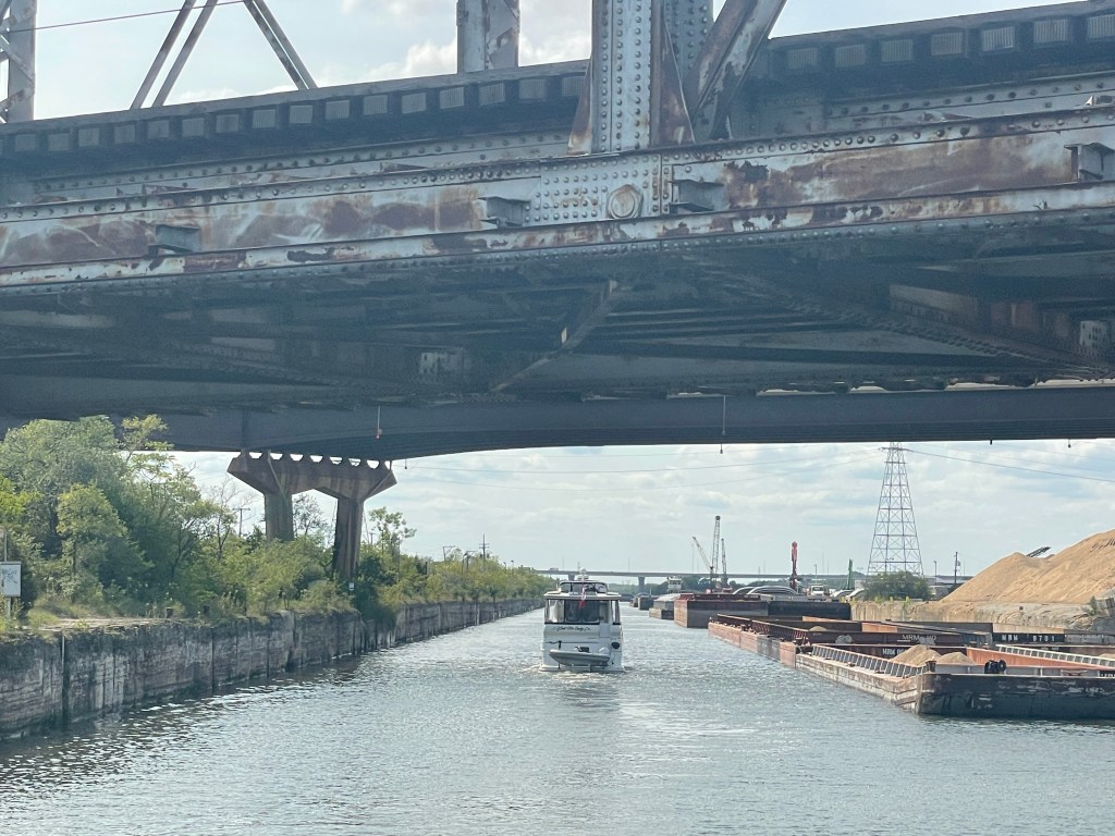 After spending a week in Chicago, which we thoroughly enjoyed, it was time to make progress on completing our “Loop”. Going down the IL river through Chicago would have been very fun, however, a 19′ fixed bridge S of the Chicago River precluded us from taking that route. Our air draft (meaning how tall the boat is) is 18.5′ and that’s when we lower the mast of the radar. The alternate route is going 10 miles South of Chicago on Lake Michigan to the Calumet River and Sag Channel. So we left Chicago at 7 a.m. and fueled up at Hammond, IN where fuel prices were cheaper than the IL marinas, and started the completion of our Loop.